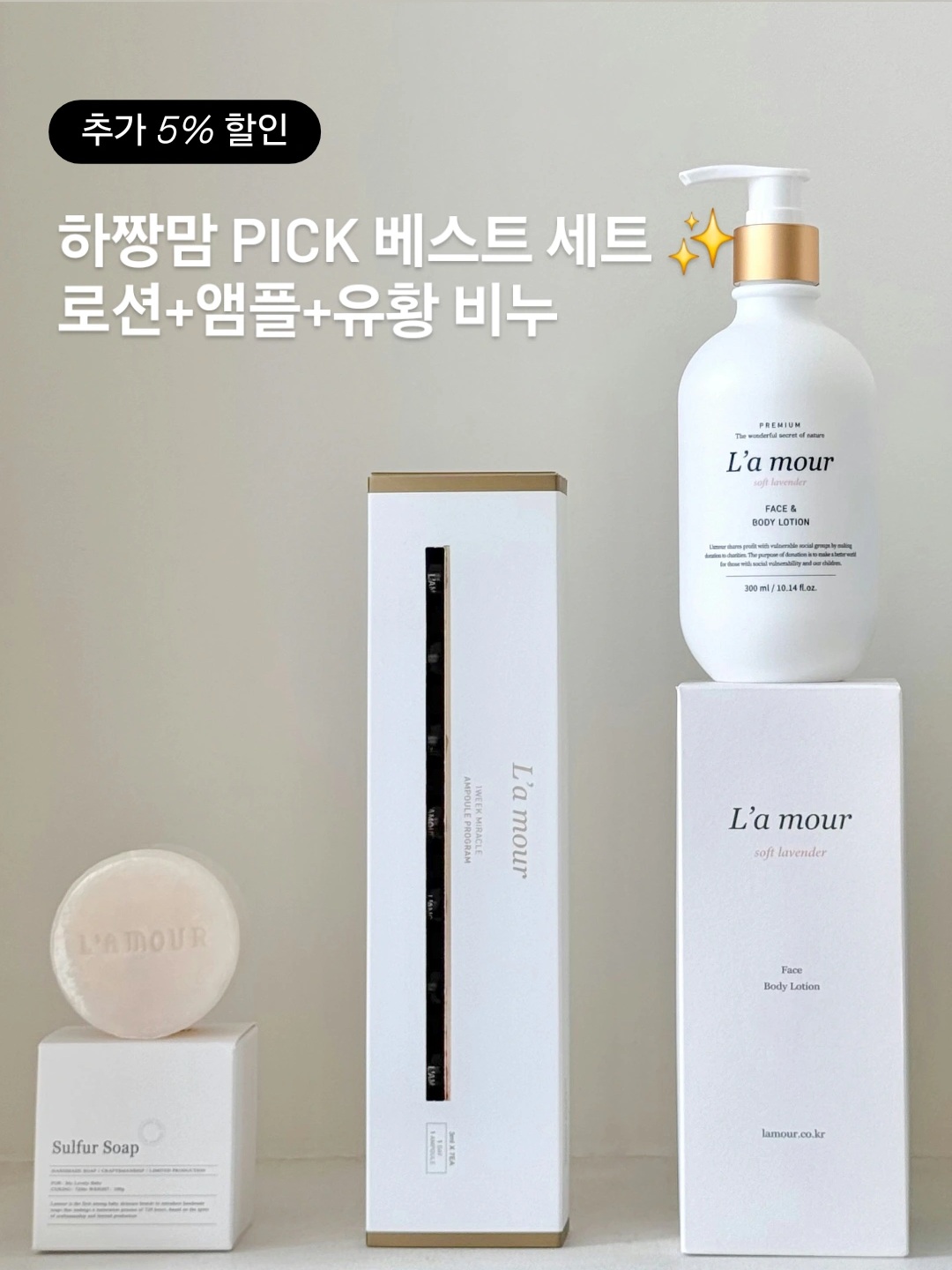 하짱맘 픽 베스트 세트부터피부 고민별 맞춤 세트까지!세트 구성은 5% 더 알뜰하게 구매 가능해요🤍✨️✨️ 10월 특가크림 3+1 크림 3개+시카 밤🎁 사은품도 꼭 챙기세요 20만원 이상 유황 비누30만원 이상 시카 스팟40만원 이상 워시50만원 이상 앰플을 증정해요