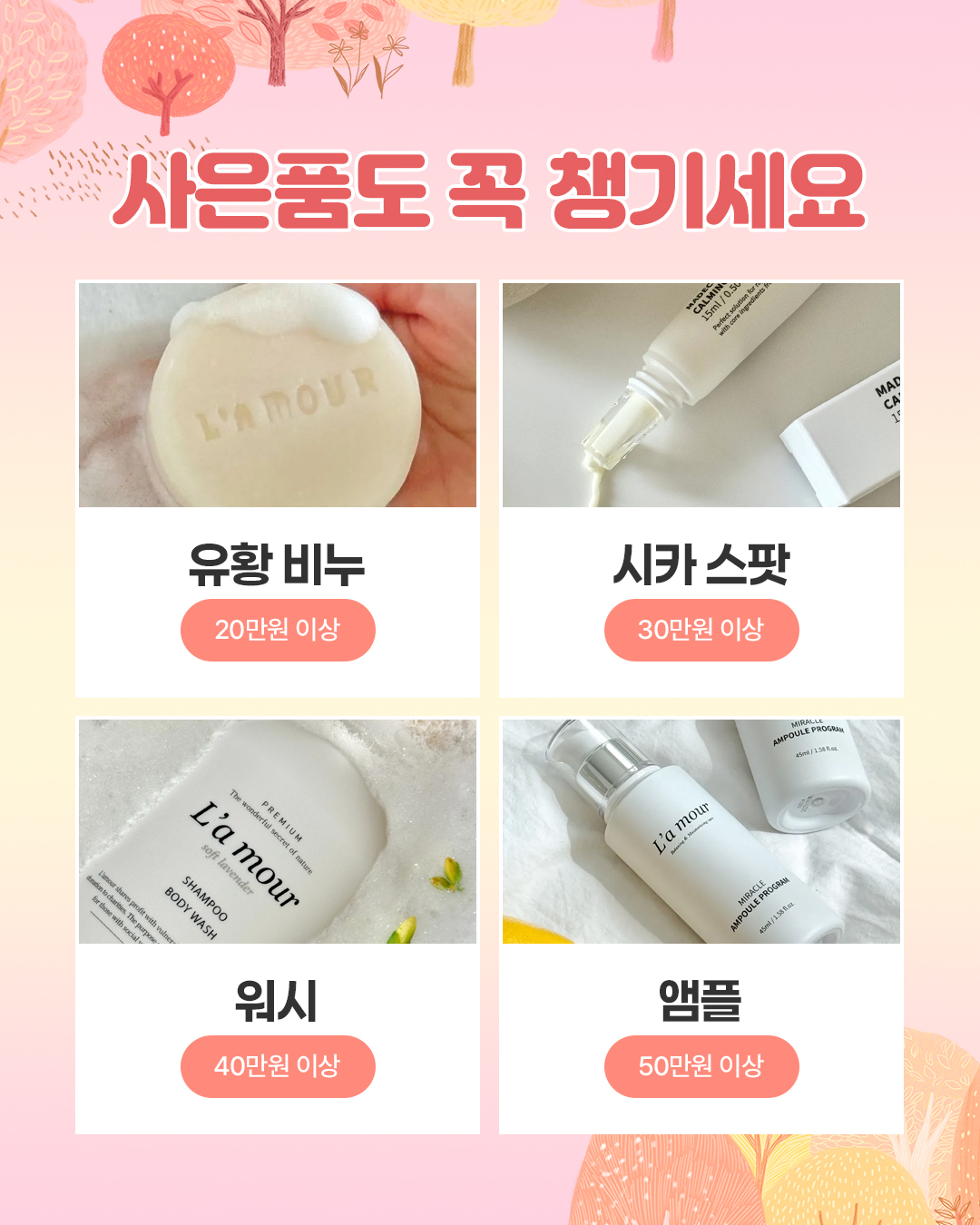 ✨️ 10월 특가크림 3+1 크림 3개+시카 밤🎁 사은품도 꼭 챙기세요 20만원 이상 유황 비누30만원 이상 시카 스팟40만원 이상 워시50만원 이상 앰플을 증정해요
