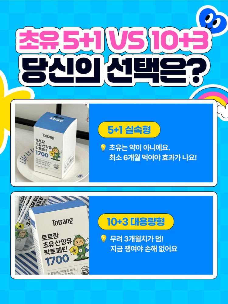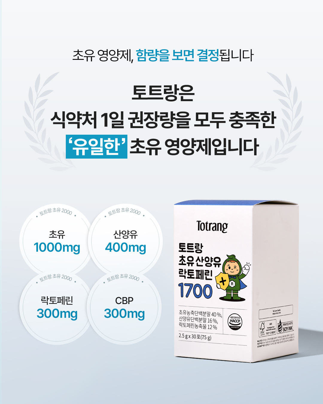 토트랑은 식약처 1일 권장량을 모두 충족한 '유일한' 초유 영양제입니다