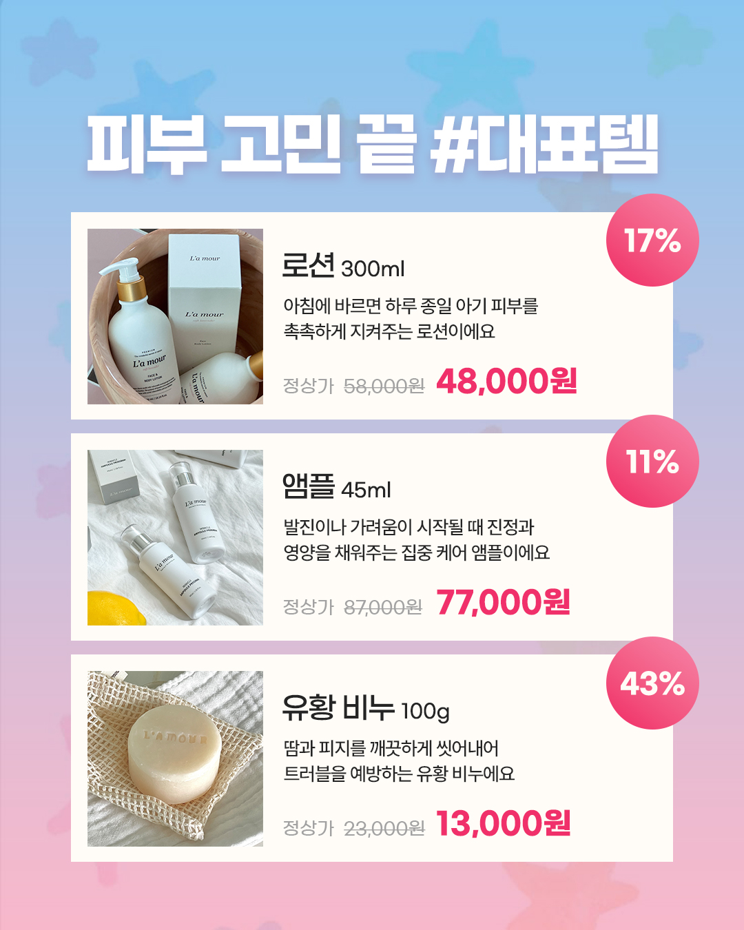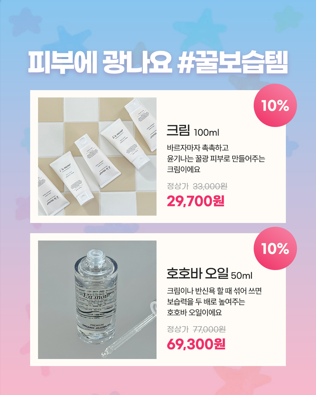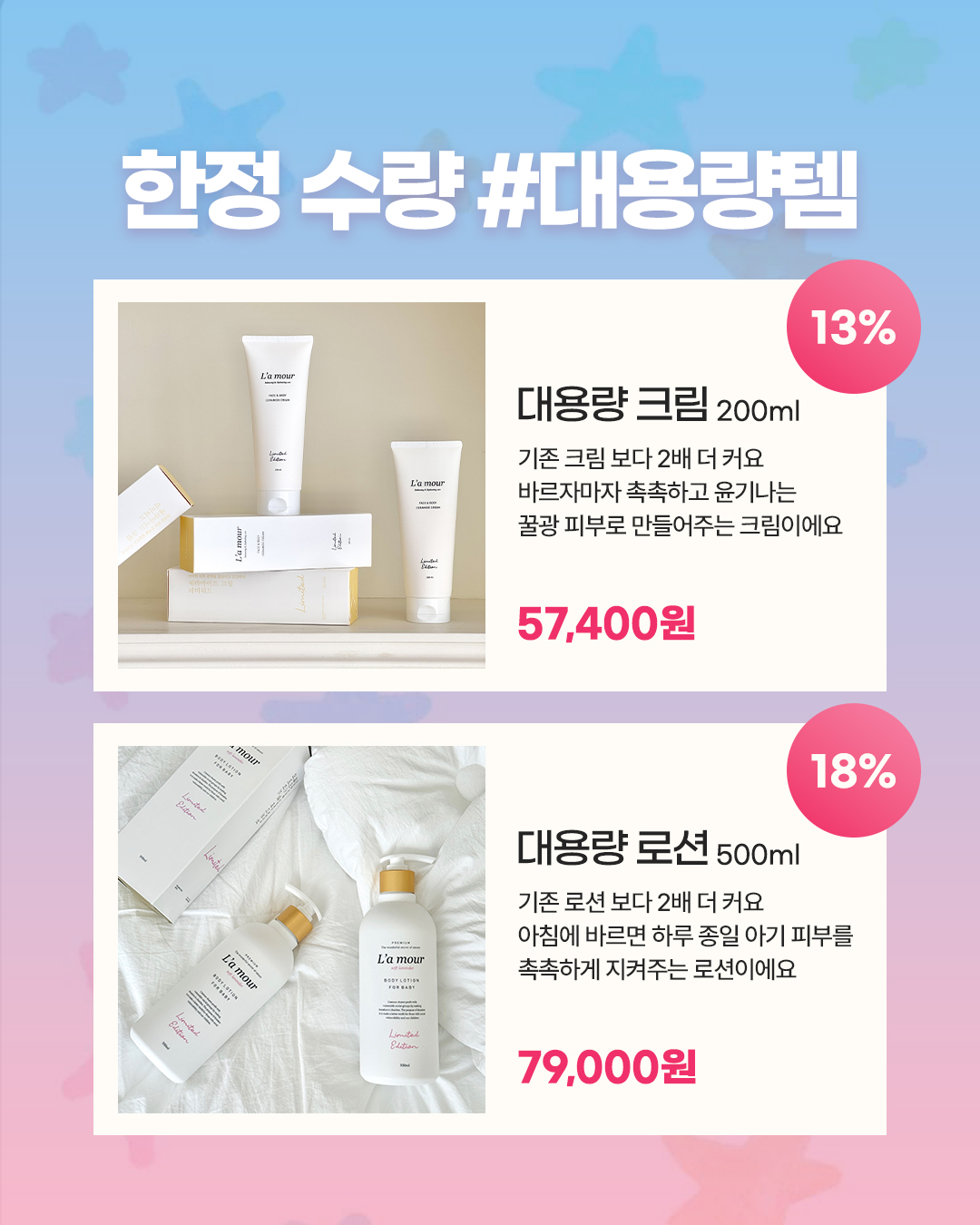 대용량 크림 4+1대용량 크림 2개+유황 비누🎁 사은품도 꼭 챙기세요30만원 이상 시카 밤40만원 이상 워시50만원 이상 호호바 오일60만원 이상 앰플을 증정해요