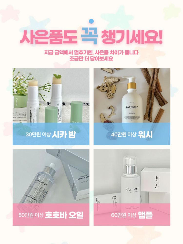 대용량 크림 4+1대용량 크림 2개+유황 비누🎁 사은품도 꼭 챙기세요30만원 이상 시카 밤40만원 이상 워시50만원 이상 호호바 오일60만원 이상 앰플을 증정해요