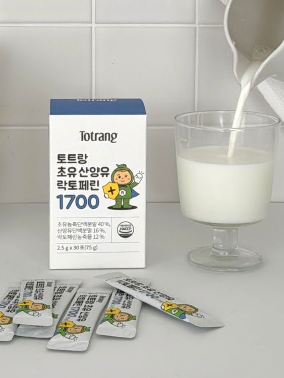 *토트랑 초유는 생산량이 정말 귀하기 때문에 재고가 충분히 확보될 때까지 50개 한정 수량으로 판매합니다. 유통 기한이 27.03.20으로 넉넉해서 쟁여도 좋아요! 아이들이 좋아하는 우유사탕 맛이에요 🍬